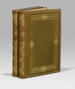 2 volumes in-8, maroquin havane à long grain, jeux de filets dorés en encadrement, interrompus au milieu de chaque bord par un gros fleuron, dos orné, dentelle intérieure, non rogné, étui (Mercier sr de Cuzin).