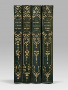 4 volumes in-8, demi-veau bleu glacé, dos orné en long d'un décor de style rocaille, tranches mouchetées (Reliure de l'époque).
