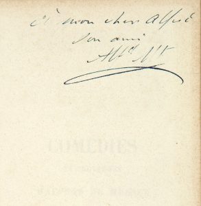 ►Édition en partie originale, contenant cinq pièces de plus que l'édition de 1840: Il faut qu'une porte soit ouverte ou fermée, Louison, On ne saurait penser à tout, Carmosine et Bettine.