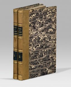 2 volumes in-8, demi-veau olive, dos lisse orné de filets dorés et à froid, pièces de titre et de tomaison noires, tranches mouchetées, étui moderne (Reliure de l'époque).