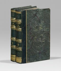 2 volumes in-8, demi-veau bleu nuit, filet doré, dos lisse orné de filets et roulettes dorés et de fers à froid, tranches marbrées, étui moderne (Reliure de l'époque).