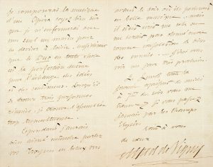 VIGNY (Alfred de) - Lettre autographe signée à Hector Berlioz, datée 20 avril 1861.