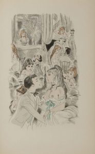 Vial, 1952. — 2 ouvrages en 2 volumes in-8, 227 x 141 : 191 pp., couverture imprimée ; 181 pp., (5 ff. premier et 3 derniers blancs), couverture imprimée. Brochés, couverture rempliée, chemises et étui d’édition.. Belle édition de ces deux ouvrages de Léon Tolstoï illustrés chacun de 16 pointes-sèches originales en couleurs de Gaston BARRET (1910-1991). . Le tirage de ces 2 volumes a été limité à 1450 exemplaires plus quelques exemplaires nominatifs. Un des 50 exemplaires sur vélin de crèvecœur du Marais numérotés en chiffres romains, celui-ci enrichi de 2 suites en noir avec remarque des illustrations de la Sonate à Kreutzer et d’un cuivre non encré dans chacun des volumes.. Dos des chemises brunis, étui renforcé. Déchirure sans gravité au dos de La Sonate à Kreutzer.