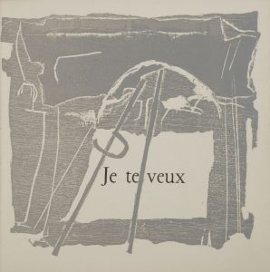 [BERTINI (Gianni)] - LEVEQUE (Jean-Jacques).. Douves.. [Alès] : PAB, été 1959. — In-12 carré, 165 x 168 : (14 ff., deux premiers et dernier blancs), couverture imprimée. Box bleu, morceau d’écorce en partie peint en bleu incrusté sur les...