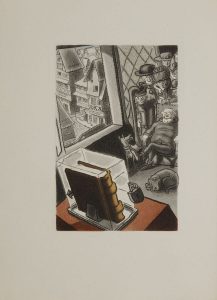 feuilles, couverture rempliée, étui.. Édition tirée à 225 exemplaires plus quelques exemplaires pour les collaborateurs et les amis de l’éditeur. Elle est illustrée de compositions de Jean BRULLER (1902-1991), à savoir 11 eaux-fortes à pleine page gravées par l’artiste et tirées en couleurs au repérage par Paul Haasen et 21 ornements (1 vignette de titre, 10 lettrines et 10 culs-de-lampe) gravés sur bois d’après les dessins de Bruller par Karin Lieven.. Un des 175 exemplaires sur papier Gaspard-Maillol à la main, parfaitement conservé.