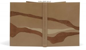 présentant un décor de croisillons faits de bandes de papier à poncer beige sur fond de cuir bleu clair, et sur le bas d’une bande faisant la largeur de la reliure à fond de cuir bleu clair avec une bande de papier à poncer beige de la même largeur collée au centre ; dos lisse, doublures et gardes de velours bleu, tête dorée, non rogné, couverture et dos conservés, étui-boîte de papier beige avec doublures de velours bleu (D. Comolli).. Premier titre de la collection « Terra africæ », tiré à 165 exemplaires et illustré de 31 eaux-fortes originales de Marianne CLOUZOT (1908-2007), dont une sur la couverture, une en frontispice et 29 dans le texte.. Un des 150 exemplaires sur vélin de Rives, celui-ci étant l’un des 125 numérotés de 26 à 150.. Très bel exemplaire, entièrement monté sur onglets, dans une reliure originale de Dominique Comolli.