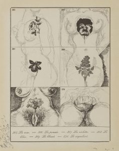 d’édition.. Édition originale tirée à 300 exemplaires plus quelques exemplaires hors commerce, entièrement illustrée par Salvador DALI de compositions érotiques faites à partir d’illustrations extraites de deux manuels de leçons de choses parus à la fin du XIXe siècle et du Catalogue of the great exhibition of the works of industry of all nations publié à Londres en 1851. « Ces illustrations ont été transformées par Salvador Dali pendant près de trente ans ; les premières de ces métamorphoses furent exécutées en 1942, à New York. ». On compte plus d’une trentaine d’illustrations dans le texte ou à pleine page, dont 4 avec une figure contrecollée proposant la reproduction du dessin original ancien, et 10 planches. Parmi ces 10 planches, 3 comprennent des illustrations contrecollées : 2 avec une reproduction de l’état original de l’illustration et une seconde métamorphose, et une avec l’état avant la métamorphose.. Un des 270 exemplaires sur vélin de Rives, signés par Dali, celui-ci étant l’un des 150 numérotés de 151 à 300.. Exemplaire très bien conservé. La toile rouge à l’intérieur de la chemise a déteint sur le dos et les bords de la couverture.