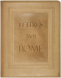 [DECARIS (Albert)] - CHATEAUBRIAND (François-René).. Lettres sur Rome.. Paris : Creuzevault, 1935. — In-folio, 417 x 322 : frontispice, (1 f.), 96 pp., (5 ff. deux derniers blancs), couverture illustrée. Maroquin beige, premier plat décoré...