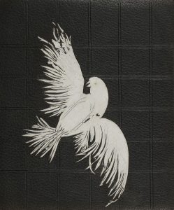 [HEUZÉ (Edmond)] - BRASILLACH (Robert).. Poèmes de Fresnes.. S.l. : Cercle Grolier, 1953. — In-4, 281 x 235 : 87 pp., (4 ff.), couverture imprimée. Maroquin gris anthracite, colombe mosaïquée et peinte en blanc sur un large quadrillage à...