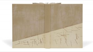 d’une partie inférieure de chagrin beige orné de filets à froid et marron, auteur (premier plat), titre (dos) et artiste (second plat) en lettres bordeaux sur la pièce de box grège au-dessus de la diagonale séparant les deux parties du décor ; dos lisse, doublures de fleur de cuir marron, gardes de fleur de cuir grège, tête argentée, non rogné, couverture et dos conservés, étui-boîte doublé de fleur de cuir marron (D & F & C).. Édition tirée à 450 exemplaires sur vélin de Rives, illustrée de 20 belles illustrations de Jacques HOUPLAIN (né en 1920).. Un des 356 exemplaires numérotés de 70 à 425, celui-ci dans une superbe reliure originale signée D & F & C.