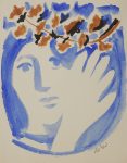 [LOBO (Baltasar)] - RIVAS (Reyna).. Dialogos con la piedra. Poemas.. Paris : Galanis, [1961]. — In-4, 325 x 255 : (20 ff. dernier blanc), couverture illustrée. En feuilles, couverture rempliée, chemise et étui d’édition.. Édition originale...