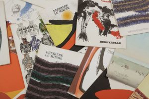 1966 : Ubac. 7 lithographies originales. (Petite déchirure au dos.) — N°163, mars 1967 : Rebeyrolle. 9 lithographies originales. — N°183, février 1970 : Chillida. — N°184, mars 1970 : Palazuelo. Lithographies originales. — N°185, avril 1970 : Riopelle. 5 lithographies originales. (Petite mouillure sur le bord de la couverture et des premiers feuillets.) — N°187, octobre 1970 : « Coexistences ». Rebeyrolle. 5 lithographies originales. — N°188, novembre 1970 : Adami. Lithographies originales. — N°190, février 1971 : Calder. 4 lithographies originales. — N°191, mars 1971 : Pol Bury. — N°192, juin 1971 : Steinberg. Une lithographie originale en couleurs sur double page. — N°193/194, octobre-novembre 1971 : Miró. Peintures sur papier. Dessins. 3 lithographies originales. — N°195, décembre 1971 : [Artistes multiples.] 1 lithographie originale d’Ubac sur la couverture. — N°196, mars 1972 : Ubac. 9 lithographies originales. — N°197, avril 1972 : Bazaine. 10 lithographies originales. — N°200, novembre 1972 : Tàpies. Objets et grands formats. 4 lithographies originales. — N°206, novembre 1973 : Adami. « Dimostrationi ». 5 lithographies originales de l’artiste. — N°227, janvier 1978 : Technicolor. 3 lithographies originales en couleurs de MONORY. — N°240, octobre 1980 : Bram van Velde. 2 lithographies originales.