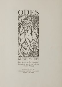 [VERA (Paul)] - VALÉRY (Paul).. Odes.. Paris : Nouvelle Revue Française, 1920. — In-4, 342 x 257 : (20 ff. premier blanc), couverture illustrée. Demi-maroquin rouge à coins, dos à nerfs, tête dorée, non rogné, couverture conservée (Yseux...