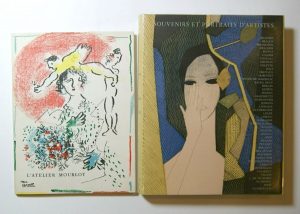 s’est tenue à la galerie Redfern à Londres du 7 décembre 1965 au 31 janvier 1966.. Débutant par une introduction de Jean Adhémar, il contient 11 lithographies originales de Marc CHAGALL, PICASSO, Joan MIRÓ, GIACOMETTI, André MINAUX, Paul JENKINS, Henri MATISSE, André MASSON, Alexander CALDER et Bernard BUFFET.. Tirage à 1150 exemplaires.. . On joint :. - MOURLOT (Fernand). Souvenirs & portraits d’artistes. Jacques Prévert. Le cœur à l’ouvrage. Paris : [pour le compte de A.C. Mazo, 1974]. — In-4, cartonnage toilé de l’éditeur, sous jaquette illustrée et rhodoïd.. Édition imprimée sur papier vélin, abondamment illustrée. La jaquette est ornée d’une lithographie originale d’André MINAUX.. Exemplaire parfaitement conservé.