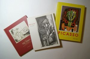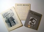 jacquette illustrée. Cinquième édition.. - PICASSO. Gravures. Bâle : galerie Beyeler, 1966. — In-4, broché. Catalogue illustré de l’exposition qui s’est tenue à la galerie Beyeler de novembre 1966 à mars 1967.. - PICASSO. Monotypes, dessins, gravures, peintures. 25 Octobre… Paris : Bouquinerie de l’institut, 2013. — In-4, cartonnage de l’éditeur. Catalogue illustré, tiré à 1500 exemplaires.. - PICASSO. Lithographs. Ostfildern-Ruit : Hatje Cantz, 2000. — In-4, cartonnage toilé d’édition, sous jaquette illustrée. Exemplaire parfaitement conservé.. - RAMIÉ (Suzanne et Georges). Céramiques de Picasso. New-York : A. Skira, 1950. — In-folio, en feuilles. Comprend un portrait photographique de Picasso sur la couverture et 7 reproductions de céramiques (sur 18).. On joint :. - Asturias. Œuvre collective d’un groupe d’artistes espagnols, peintres, sculpteurs, écrivains, poètes. Paris : Cercle d’art, 1964. — In-4, broché. Illustrations de nombreux artistes espagnols dont PICASSO. Quelques salissures à la couverture.