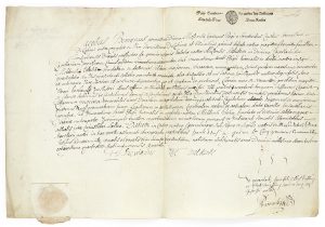 Germiniaeo sub signo et sigillo nostris [...] (Donné en notre château de Germigny, sous nos signatures et sceau).” Contresigné par le secrétaire et pourvu du sceau épiscopal authentifiant l'acte “chirographaire”.