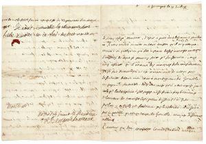 Lettre signée “J. Benigne E de Meaux”, avec 3 lignes autographes, 3 pages 1/4 in-4, trace de cachet au dos.