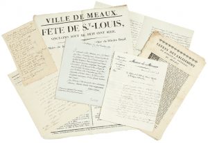 [VILLE DE MEAUX]. Ensemble de 5 lettres et documents relatifs à la ville de Meaux et son administration.