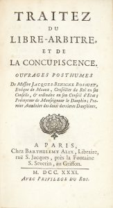 BOSSUET (Jacques Bénigne) - Traitez du libre-arbitre, et de la concupiscence. Ouvrages posthumes. Paris : Barthelemy Alix, 1731.