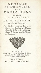 BOSSUET (Jacques Bénigne) Défense de l'histoire des variations contre la réponse de M. Basnage Ministre de Roterdam. Paris : J. Anisson, 1691.