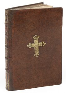 Veau brun, armes au centre des plats, dos à nerfs orné, tranches mouchetées (reliure de l' époque).