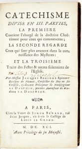 BOSSUET (Jacques Bénigne) - Catechisme divisé en III. Parties, la première Contient l'abrégé de la doctrine Chrétienne pour ceux qui commencent ; la seconde regarde Ceux qui sont plus avancez dans la connoissance des Mystères : et la...
