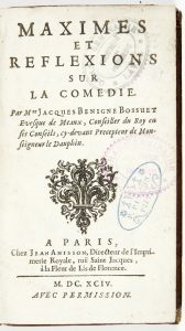 BOSSUET (Jacques Bénigne) - Maximes et réflexions sur la comédie. Paris : Jean Anisson, 1694. —