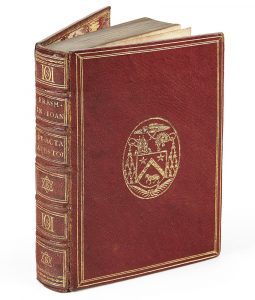 Maroquin rouge, triple filet doré en encadrement et armes dorées au centre sur les plats, dos à nerfs orné, roulette dorée intérieure, tranches dorées (reliure du XVIIe siècle).