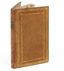 Petit in-8, 150 x 88 : (7 ff.), 56 pp. Maroquin citron, encadrements de filets et roulettes dorées sur les plats, dos lisse orné, dentelle dorée intérieure, tranches dorées (reliure de la fin du XVIIIe siècle).