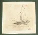 Les dessins sont de formats divers et pour la plupart fixés au centre d'un feuillet cartonné vert sombre. Tous sont d'excellente qualité mais seulement 2 portent le nom de l'artiste. Deux petits dessins à la mine de plomb, l'un représentant un petit bâteau rempli de marchandises, l'autre un navire dans une tempête, portent en effet pour le premier le cachet rouge du peintre et graveur Paul Huet (1803-1869) et pour le second la signature de Théodore Gudin (1802- 1880) qui fut le premier peintre de la Marine français.
