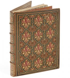 Veau havane, dos à nerfs orné, roulette dorée intérieure, tranches rouges (reliure de l' époque).