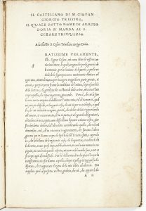 TRISSINO (Giangiorgio) - Dialogo del Trissino intitulato il Castellano, nel quale si tratta de la lingua italiana. [Venise : Tolomeo Gianicolo, 1529].