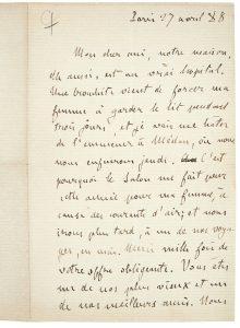 ►Il a été enrichi d'une belle lettre autographe signée de Zola adressée à son ami le peintre Antoine Guillemet. Lettre très amicale, elle est datée de «Paris 27 avril 88» et fait 1 page 3/4 in-8 :