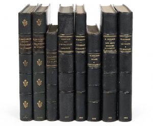 RELIURE DE L'ÉPOQUE. Dos à nerfs de chagrin bleu nuit orné, tranches jaspées.