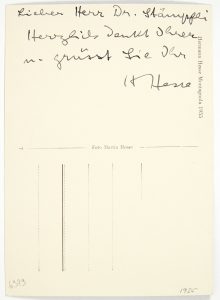 ENVOI AUTOGRAPHE au dos : Lieber Herr Dr. Stämpfli, Herzliche dankt Ihrer, zu grüsst Sie Ihr, H Hesse.