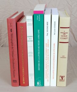 • CARDINALL (A. W.). A Bibliography of the Gold Coast. Accra, 1931. (Réimpression, 2002). In-8, (2) ff + XIX + (2) ff + 384 pp. toile grise de l'éditeur. L'histoire mouvementée de ce pays d'Afrique jusqu'en 1930 se trouve toute entière dans les 5168 références de cette bibliographie.
