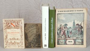 • EUTING (Jules). Guide illustré de la ville de Strasbourg et de la cathédrale. Quatriéme édition, revue et corrigée. Strasbourg, Trübner, 1896. In-12, frontispice + (2) ff + 78 pp. + 1 plan dépliant, broché, couverture illustrée.