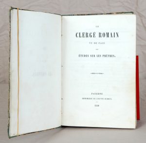 (ANTICLÉRICALISME). LE CLERGÉ ROMAIN VU DE FACE OU ÉTUDES SUR LES PRÊTRES. Payerne, imprimerie de Lisette Duboux, 1850.