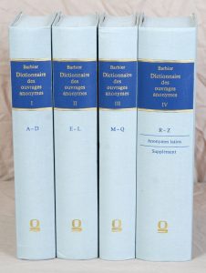 BARBIER (Antoine-Alex.). Dictionnaire des ouvrages anonymes et pseudonymes. 3e édition. Paris, 1872-1879 (Réimpression, 1986).