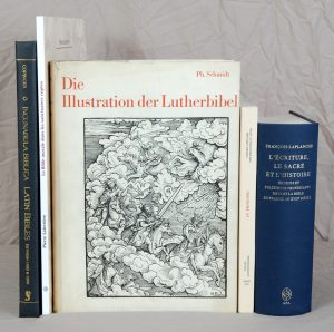 • SCHMIDT (Ph.). Die Illustration der Lutherbibel, 1522-1700. Bâle, Reinhardt, (1962). In-4, 496 pp. toile grise de l'éditeur sous jaquette illustrée. Reproduction, longuement commentée. 400 illustrations.