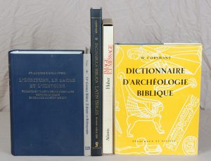 • CORSWANT (W.). Dictionnaire d'archéologie biblique. Neuchatel et Paris, Delachaux & Niestlé, 1956. In-8, 324 pp. toile de l'éditeur, sous jaquette illustrée. Texte sur 2 colonnes, agrémenté de nombreuses vignettes.