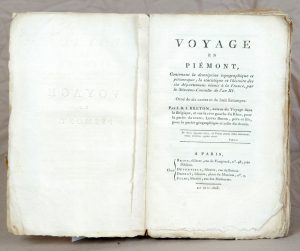 BRETON DE LA MARTINIÈRE (Jean-Baptiste Joseph). Voyage en Piémont, contenant la description topographique et pittoresque, la statistique et l’histoire des six départemens réunis à la France, par le Sénatus-Consulte de l’An XI. Par J.B.J...