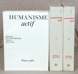 JULIEN CAIN. Humanisme actif. Mélanges d’art et de littérature offerts à Julien Cain. Préface par Étienne Dennery. Paris, 1968.