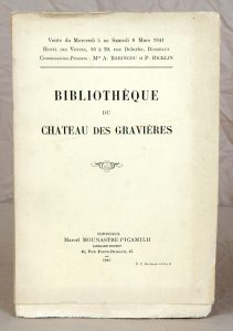 (CATALOGUE DE VENTE PUBLIQUE). Bibliothèque du Château des Gravières. Bordeaux, Mounastre-Picamilh 1941.