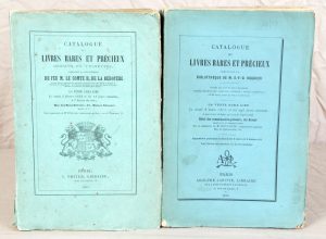 (CATALOGUE DE VENTE PUBLIQUE). Catalogues des livres rares et précieux, dessins et vignettes, composant la bibliothèque de feu M. le comte de La Bédoyère ... Paris, Potier, février 1862.