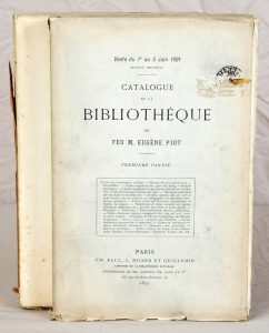 (CATALOGUE DE VENTE PUBLIQUE). Catalogue de la bibliothèque de feu M. Eugène PIOT. Paris, Paul Huard et Guillemin, 1891.