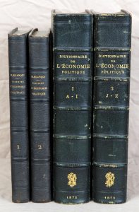 (ÉCONOMIE POLITIQUE). COQUELIN & GUILLAUMIN. Dictionnaire de l’économie politique contenant l’exposition des principes de la science, l’opinion des écrivains qui ont le plus contribué à sa fondation et à ses progrès, la bibliographie...