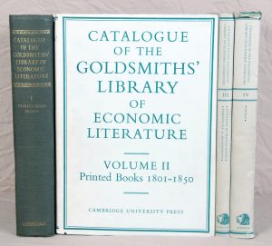 (ÉCONOMIE POLITIQUE). GOLDSMITHSB. Catalogue of the Goldsmiths’ Library of Economic Literature. Compiled by M. Cannet and D. Knott with an introduction by P. Pafford. Cambridge University Press, 1970 -1975 & Londres Athlone Press, 1982-1983.