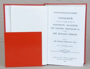 (ÉLECTRICITÉ - MAGNÉTISME - TÉLÉGRAPHE). RONALDS (Francis). Catalogue of books and papers relating to electricity, magnetism, the electric telegraph including the Ronalds Library. Edited by Alfred J. Frost. New York, 1880 (Réimpression, 2001).