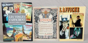 Grand in-4, 144 pp. cartonnage illustré de l'éditeur. « Depuis l'époque de Stanislas à aujourd'hui, en cinq cents affiches, l'histoire des Vosges : grands événements, tourisme, thermalisme, économie, arts ... etc, par des illustrateurs tels que Grasset, Capiello, Paul Colin, Jean d'Ylen, Hus ».